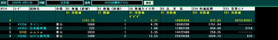 以下は、4/27に会員さんと資料請求された方に添付送信させていただいた4/25 QPS研究所のデイトレの例です
