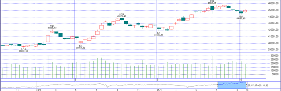 4,5週 7,8週で節目となりやすい傾向。目先の天井圏です。